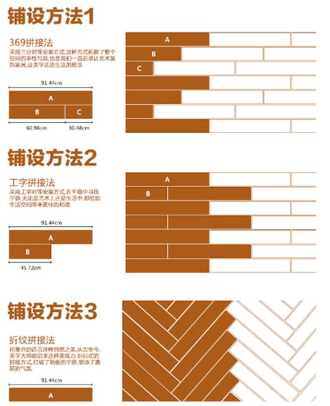 3.人字鋪設(shè)法或者拆紋拼接法 (安裝費(fèi)用會比以上高)
