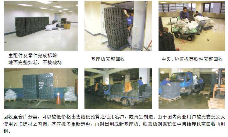 9-2:重新使用:使用本網(wǎng)絡(luò)地板之所有主元件與配件,于搬遷時,95%以上可重新使用。